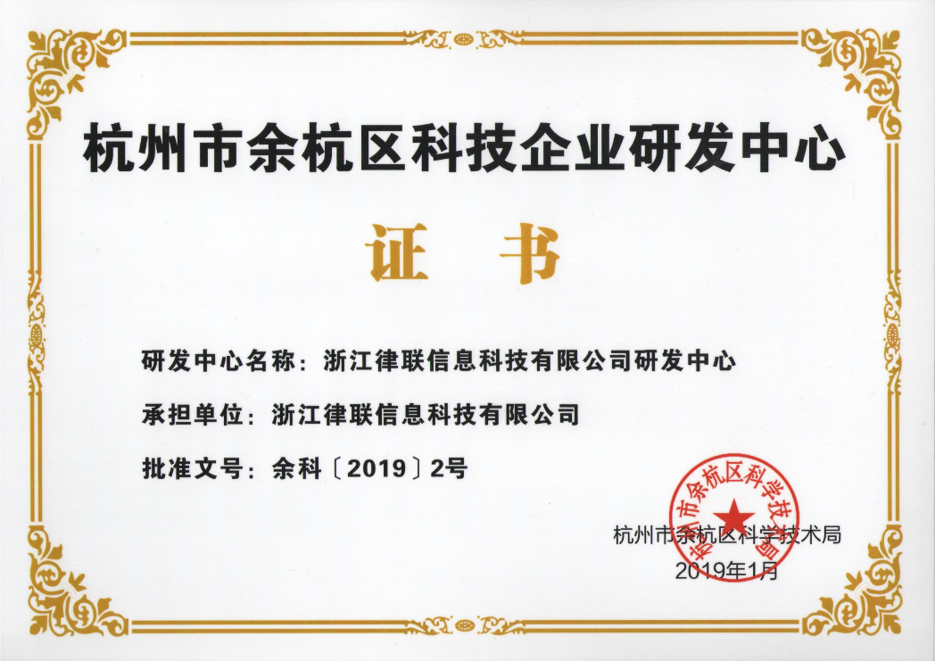 為深入實施創(chuàng)新驅(qū)動發(fā)展戰(zhàn)略,加強余杭區(qū)科技企業(yè)研發(fā)中心建設(shè)與管理,進一步增強企業(yè)自主創(chuàng)新能力和市場競爭能力,加快推動產(chǎn)業(yè)轉(zhuǎn)型升級,根據(jù)《余杭區(qū)科技企業(yè)研發(fā)中心認定辦法》(余科【2019】2號)文件精神,經(jīng)評審,認定浙江律聯(lián)信息科技有限公司研發(fā)中心為余杭區(qū)科技企業(yè)研發(fā)中心。