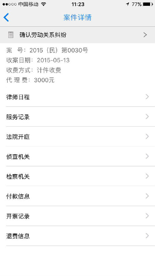 可以查看律師的日程安排、服務記錄、法院開庭、付款記錄、開票記錄、退費記錄等詳細信息。