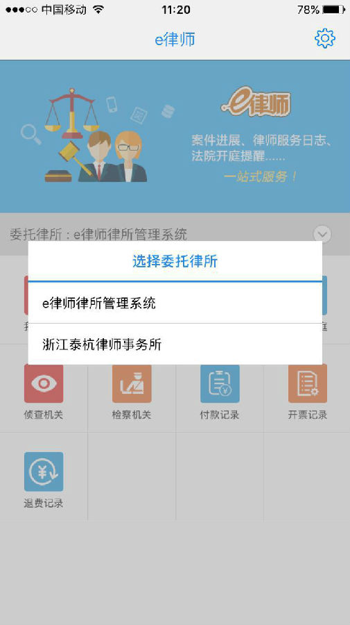 (1)您所委托的案件的代理律所尚未使用“e律師”管理系統。