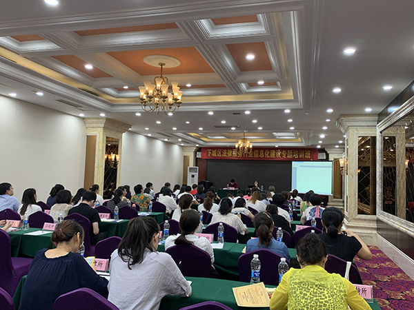 2019年8月15日,浙江律聯信息科技有限公司受杭州市下城區司法局邀請,參與由下城區司法局主辦的:下城區法律服務行業信息化建設專題培訓班。本次參與培訓班的律所共計60多家,共同學習律所信息化建設,律聯科技客服部經理陳麗珍出席了本次培訓班活動并擔任培訓導師。