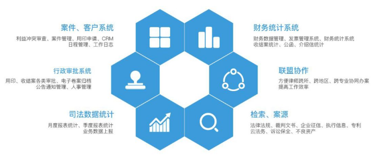 “e律師”智慧律所應(yīng)用系統(tǒng)(以下簡稱“e律師”)是由浙江律聯(lián)信息科技有限公司歷時(shí)六年研發(fā),專注于為律所打造的云辦公平臺(tái),集合人(管理/協(xié)作)、財(cái)(財(cái)務(wù))、務(wù)(業(yè)務(wù))三位于一體,幫助律所實(shí)現(xiàn)業(yè)務(wù)聯(lián)動(dòng)、數(shù)據(jù)分析,為律所經(jīng)營管理提供全面的、一體化的IT支撐,同時(shí)實(shí)現(xiàn)律師個(gè)人和團(tuán)隊(duì)的高效協(xié)作。