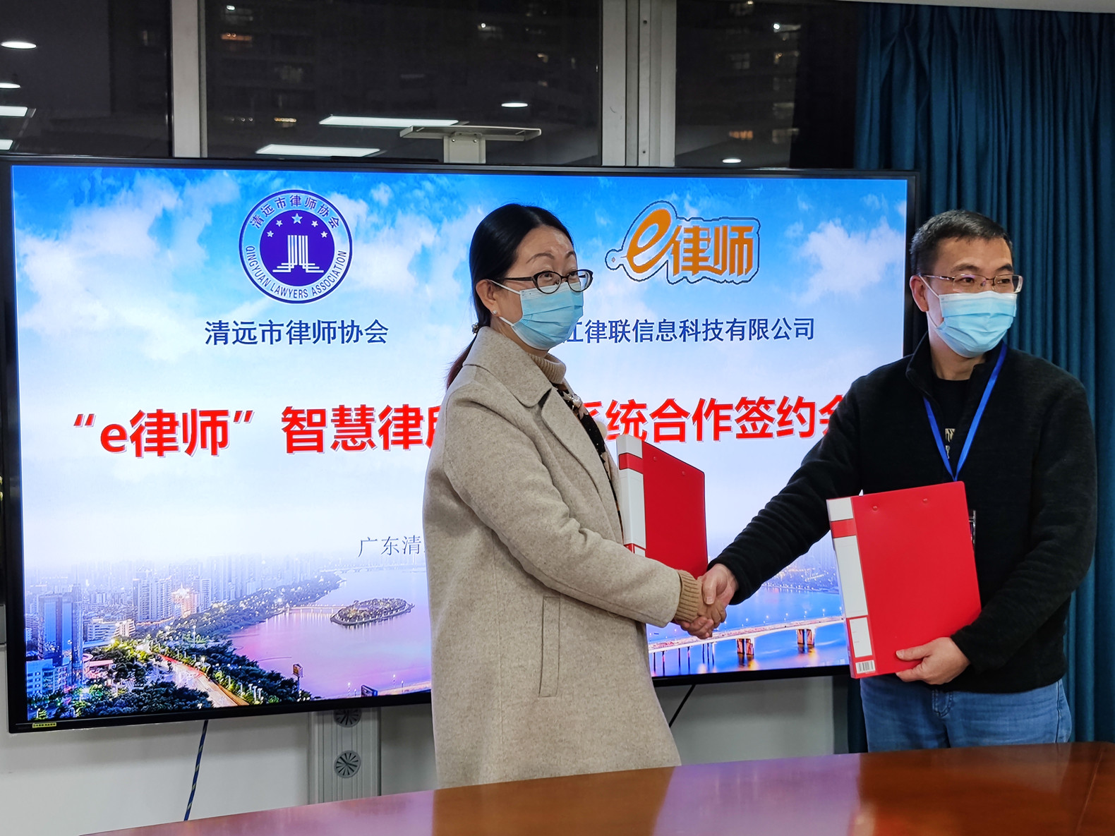 清遠市司法局黨組成員、市律師行業黨委專職副書記房梓華,清遠市律師協會會長鄺慶剛,清遠市律師協會副會長朱延紅,清遠市司法局律管科副科長魏展超,律聯科技董事長程素華,清遠市律師協會秘書長黃文雯等出席簽約儀式,簽約儀式由清遠市律師協會會長鄺慶剛主持。
